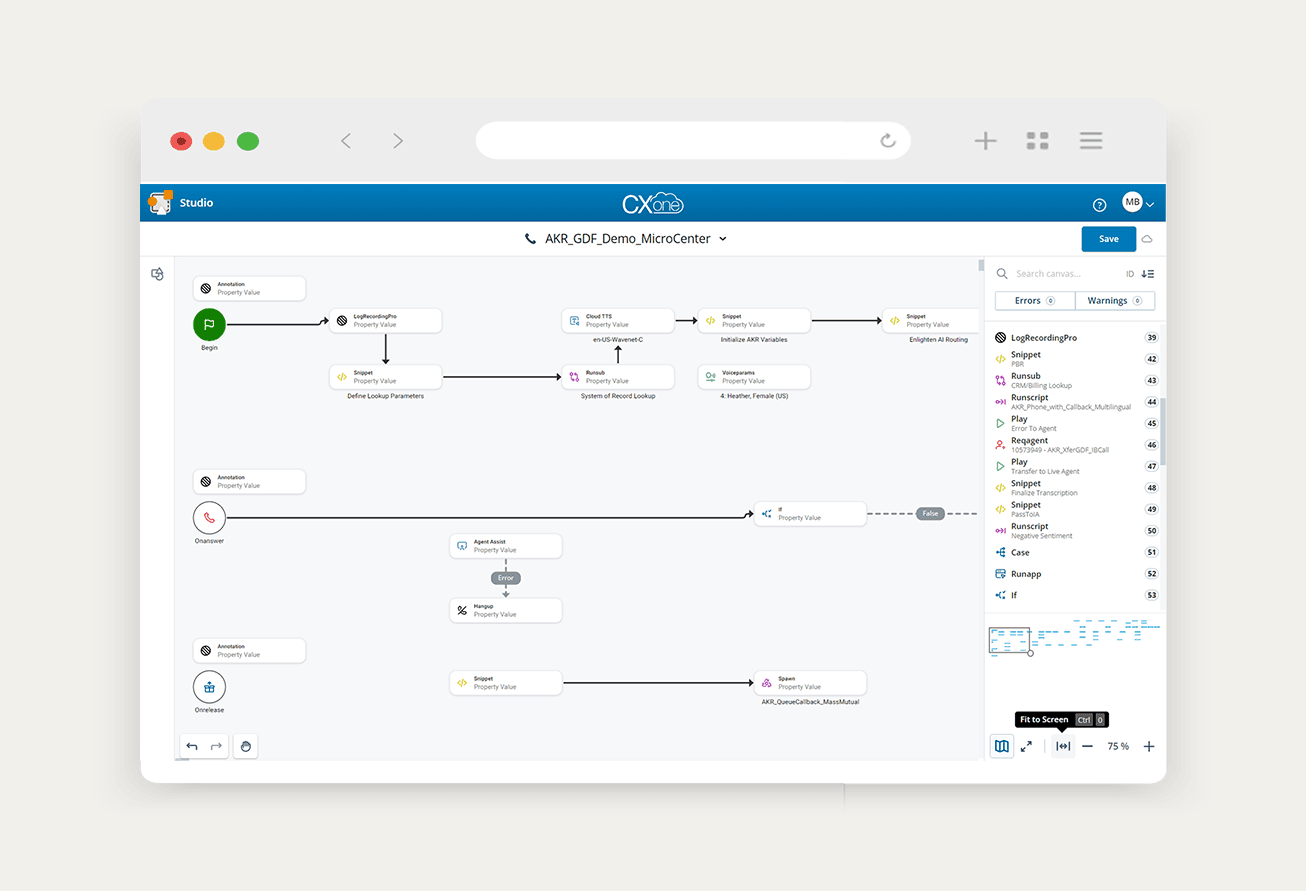 NiCE Interactive Voice Response (IVR) delivers cloud-native voice self-service that accelerates resolution and improves routing accuracy. Because it is natively integrated with CXone's ACD and platform AI, you can automate routine requests, gather key details up front, and seamlessly hand off to agents with full context.Download datasheet Take the tour