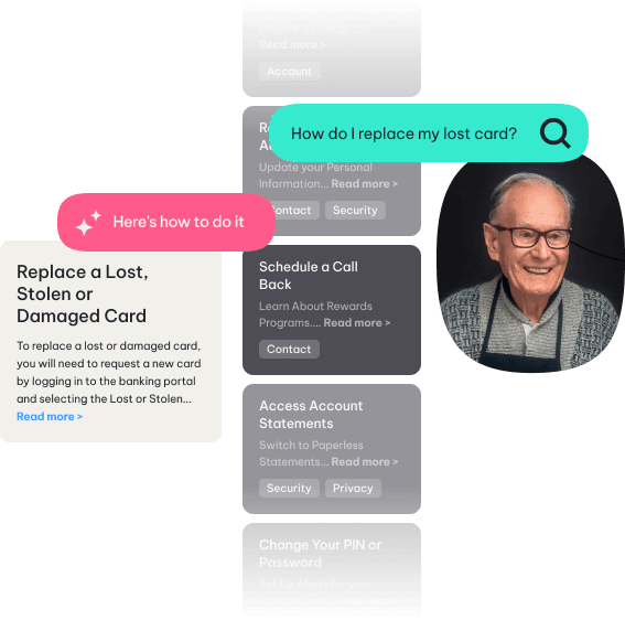 Cree un mundo intuitivo donde la información correcta aparezca exactamente cuando se necesita, ayudando a los clientes y agentes a encontrar soluciones al instante.Ver la demostración Solicitar una cotización